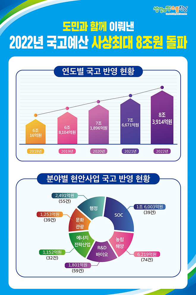 Àü¶ó³²µµ´Â 2ÀÏ ±¹È¸ º»È¸ÀǸ¦ Åë°úÇÑ 2022³â Á¤ºÎ¿¹»ê¿¡ 8Á¶3914¾ï¿øÀÌ ¹Ý¿µµÅ »ç»ó ù ±¹ºñ 8Á¶¿ø ½Ã´ë¸¦ ¿¾ú´Ù°í ¹àÇû´Ù. ÀÌ´Â Áö³ÇØ 7Á¶6671¾ï¿øº¸´Ù 9.4%(7243¾ï¿ø) ´Ã¾î³ ±Ô¸ð´Ù.