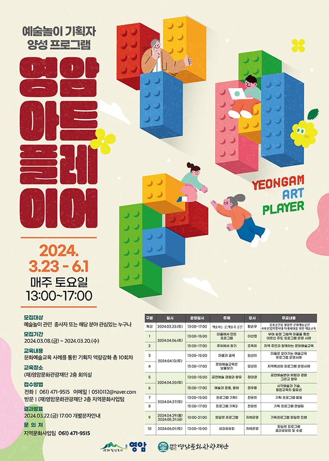 (Àç)¿µ¾Ï¹®È°ü±¤Àç´ÜÀÌ Áö¿ª ¹®È°ü±¤ ÀÚ¿øÀ» Ȱ¿ëÇÑ ¿¹¼ú±³À° ÇÁ·Î±×·¥ÀÎ ¡®¿µ¾Ï¾ÆÆ®Ç÷¹À̾îYAP¡¯ Âü°¡ÀÚ¸¦ ¸ðÁýÇÑ´Ù.