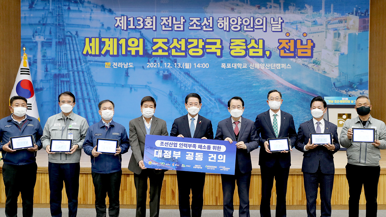 Àü³²µµ´Â Áö³ 13ÀÏ ¸ñÆ÷´ëÇб³ ½ÅÇØ¾ç»ê´ÜÄ·ÆÛ½º¿¡¼ µµ³» Á¶¼±․ÇØ¾ç±â¾÷ ´ëÇ¥ ¹× ³ëµ¿ÀÚ, À¯°ü±â°ü, ÁöÀÚü °ü°èÀÚ 70¿©¸íÀÌ Âü¼®ÇÑ °¡¿îµ¥ ¡®Á¦13ȸ Àü³² Á¶¼±¡¤ÇؾçÀÎÀÇ ³¯¡¯À» °³ÃÖÇϰí, Á¶¼±Àη ºÎÁ· ÇØ¼Ò¸¦ À§ÇÑ ´ëÁ¤ºÎ °øµ¿°ÇÀǹ®À» äÅÃÇß´Ù.