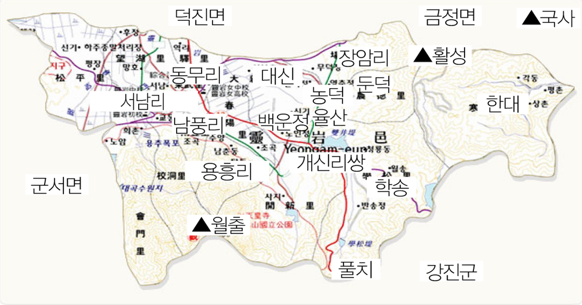 Àå¾Ï¸® µÚ¿¡ Àִ Ȱ¼º»êÀº ±¹»çºÀÀ¸·Î À̾îÁ® ±× ÀÚ¶ôÀÌ Áö¸®»ê±îÁö ¿¬°áµÈ´Ù. ÀÌ·¯ÇÑ ÁöÇüÀû Ư¼º ¶§¹®¿¡ Àå¾Ï¸®´Â Çѱ¹ÀüÀï ÀÌÀüºÎÅÍ »¡Ä¡»ê°ú ÁÂÀÍȰµ¿ÀÌ È°¹ßÇß´Ù. ´ç½Ã °æÂûÀÌ ¿µ¾Ï¸é¿¡¼ ±ÝÁ¤»ê, À¯Ä¡»êÀ¸·Î ÀÛÀüÀ» ³ª°¥ ¶§´Â ¹Ýµå½Ã Àå¾Ï¸®¸¦ °ÅÃÄ¾ß Çß´Ù.