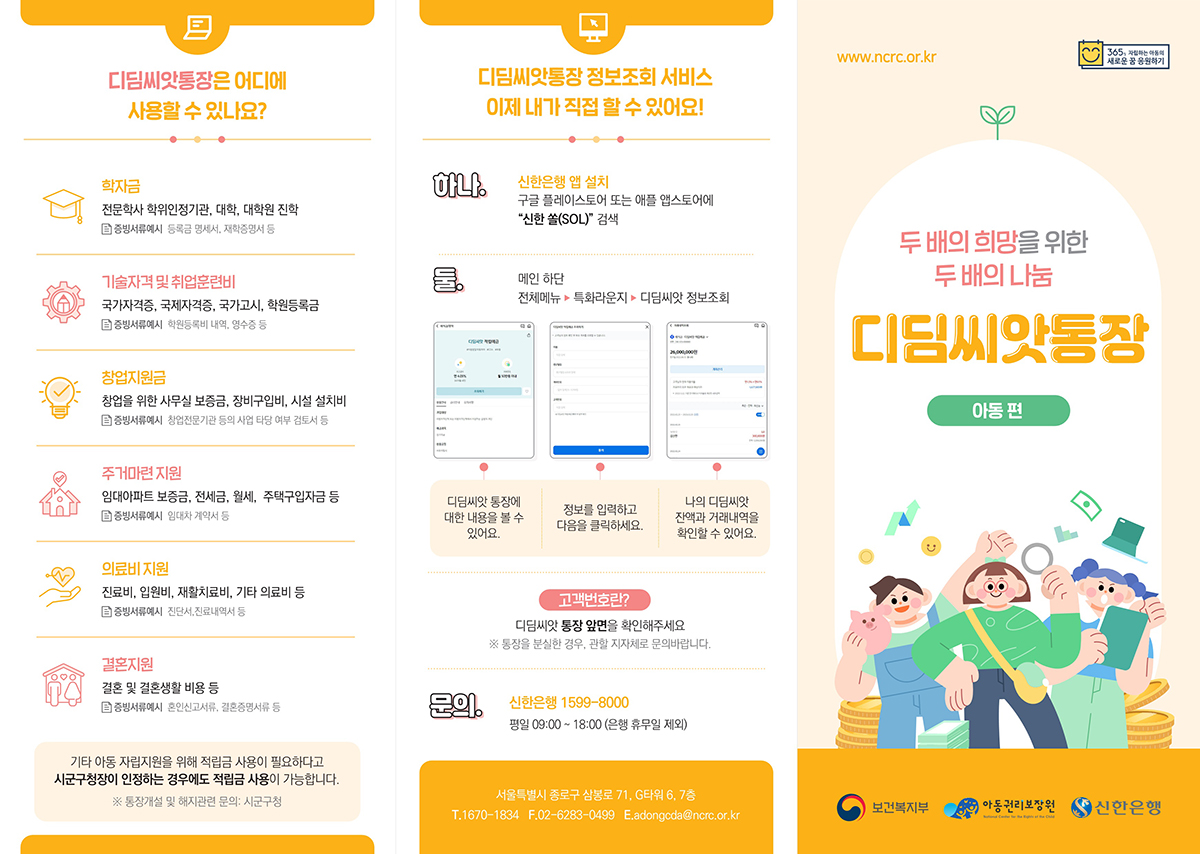 ¿µ¾Ï±ºÀÌ Àú¼ÒµæÃþ ¾Æµ¿ ÀÚ»êÇü¼º Áö¿ø»ç¾÷ÀÎ ¡®µðµõ¾¾¾ÑÅëÀ塯 ´ë»óÀ» Â÷»óÀ§°èÃþ °¡±¸ ¾Æµ¿±îÁö È®´ëÇÑ´Ù°í 8ÀÏ ¹àÇû´Ù.