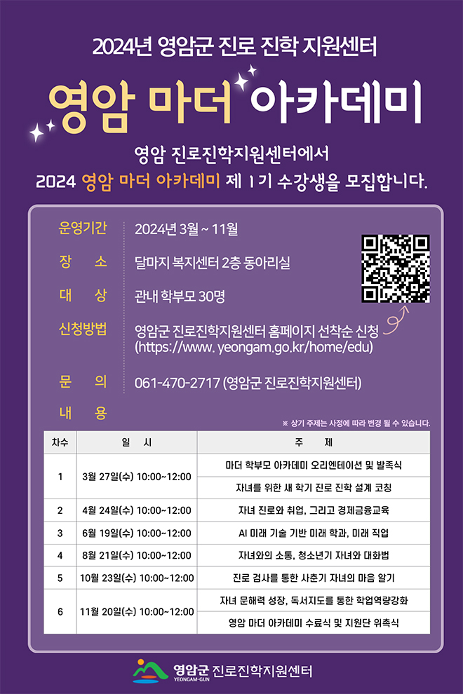 ±³À° Àü¹®°¡µéÀÌ À̲ô´Â ¾ÆÄ«µ¥¹Ì´Â 11¿ù±îÁö ÃÑ 6ȸ¿¡ °ÉÃÄ °¢°¢ 2½Ã°£ µ¿¾È ÁøÇàµÈ´Ù. ÁÖ¿ä °ÀÇ ³»¿ëÀº ÀÚ³àÀÇ »õ Çбâ Áø·ÎÁøÇÐ ¼³°è ÄÚĪ, Áø·Î¡¤Ãë¾÷ ¹× °æÁ¦±ÝÀ¶±³À°, »çÃá±â ÀÚ³àÀÇ ¸¶À½À» ÀÌÇØÇϱâ À§ÇÑ Áø·Î °Ë»ç, ±×¸®°í Çо÷ ¿ª·®À» °ÈÇϱâ À§ÇÑ µ¶¼ Áöµµ µî ´Ù¾çÇÏ´Ù.