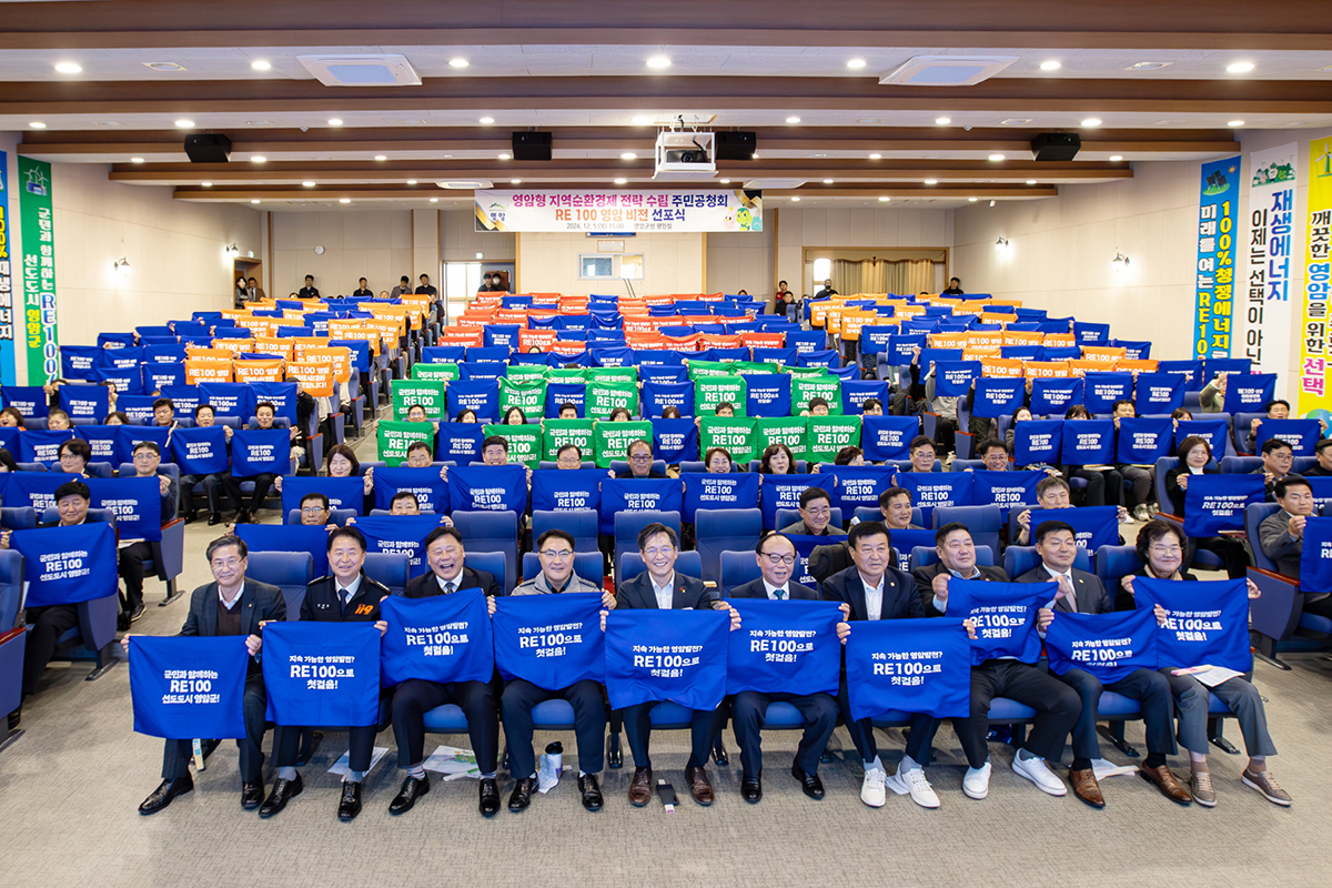 ¿µ¾Ï±ºÀº 5ÀÏ ±ºÃ»¿¡¼ ±º¹Î°ú ±â¾÷ °ü°èÀÚµéÀÌ Âü¼®ÇÑ °¡¿îµ¥ ¡®RE100¿µ¾Ï ºñÀü¼±Æ÷½Ä¡¯À» ¿°í ´Ü°èº° Àç»ý¿¡³ÊÁö Àüȯ ¸ñÇ¥¸¦ °ø°³Çß´Ù. RE100Àº ±â¾÷À̳ª Áö¿ª¿¡¼ »ç¿ëÇÏ´Â Àü·ÂÀÇ 100%¸¦ ž籤, dz·Â µî Àç»ý¿¡³ÊÁö·Î Ãæ´çÇÏ´Â °ÍÀ» ÀǹÌÇÑ´Ù.