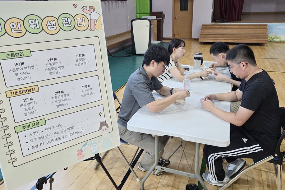 °³ÀλýȰ ¿µ¿ª¿¡¼´Â ¼ÕÅé±ðÀÌ »ç¿ë¹ý°ú ±âÃÊ ÇǺΰü¸®, ¼ö°Ç °³±â, ¾ç¸» Á¤¸®Çϱ⠵îÀ» ½Ç½ÀÇß´Ù. ÇлýµéÀº ÀÎÁ¶ ¼ÕÅéÀ» ±ð¾Æº¸¸ç À§»ý°ü¸®ÀÇ ±âº»À» ÀÍÇû°í, û¼Ò±â¸¦ Á÷Á¢ »ç¿ëÇØ °´çÀ» û¼ÒÇÏ´Â °úÁ¤µµ °ÅÃÆ´Ù.