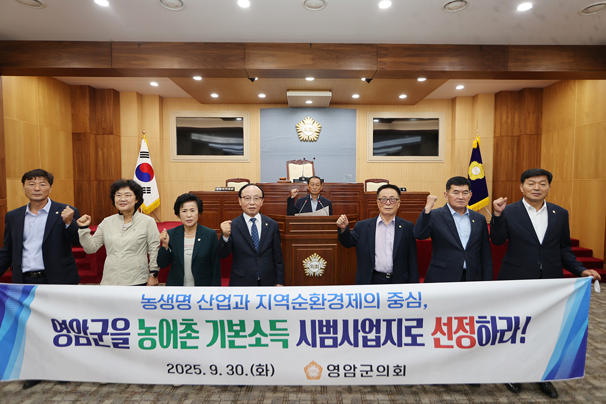 ¿µ¾Ï±ºÀÇȸ´Â 9¿ù 30ÀÏ º»È¸ÀÇÀå¿¡¼ ÀÇ¿ø 8¸íÀÌ Àü¿ø Âü¼®ÇÑ °¡¿îµ¥ ¡®³ó¾îÃÌ ±âº»¼Òµæ ½Ã¹ü»ç¾÷Áö ¿µ¾Ï±º ¼±Á¤ Ã˱¸ °ÇÀǹ®¡¯À» ¹ßÇ¥Çß´Ù.