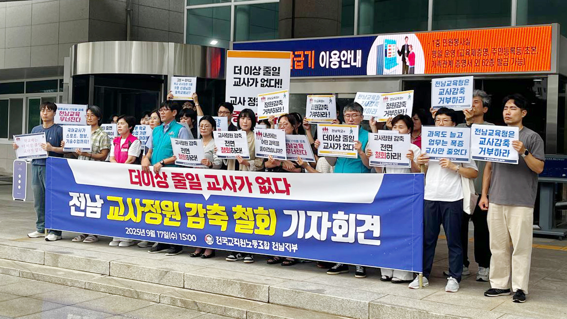 ±³À°ºÎ°¡ 2026³â Àü³² Áߵ¿ø °¨Ãà ±Ô¸ð¸¦ 170¸í¿¡¼ 116¸íÀ¸·Î 54¸í ÁÙ¿´Áö¸¸, ±³¿ø´Üü´Â °¨Ãà Á¤Ã¥ ÀÚüÀÇ Ã¶È¸¸¦ ¿ä±¸Çϸç ÅõÀïÀ» À̾±â·Î Çß´Ù.