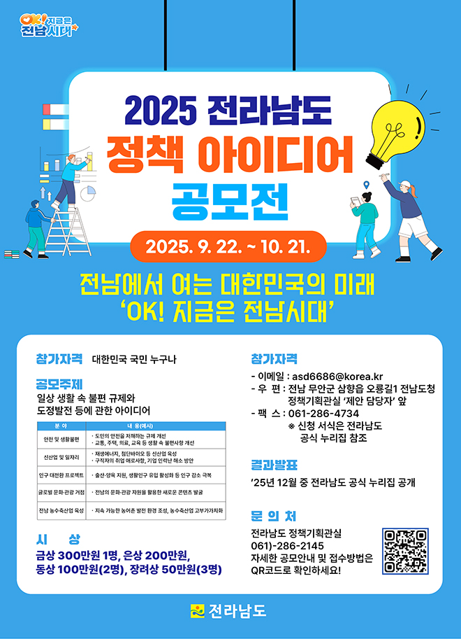 Àü¶ó³²µµ°¡ ¿À´Â 21ÀϱîÁö ¡®2025³â Àü¶ó³²µµ Á¤Ã¥ ¾ÆÀ̵ð¾î °ø¸ðÀü¡¯À» ÁøÇà ÁßÀÌ´Ù.