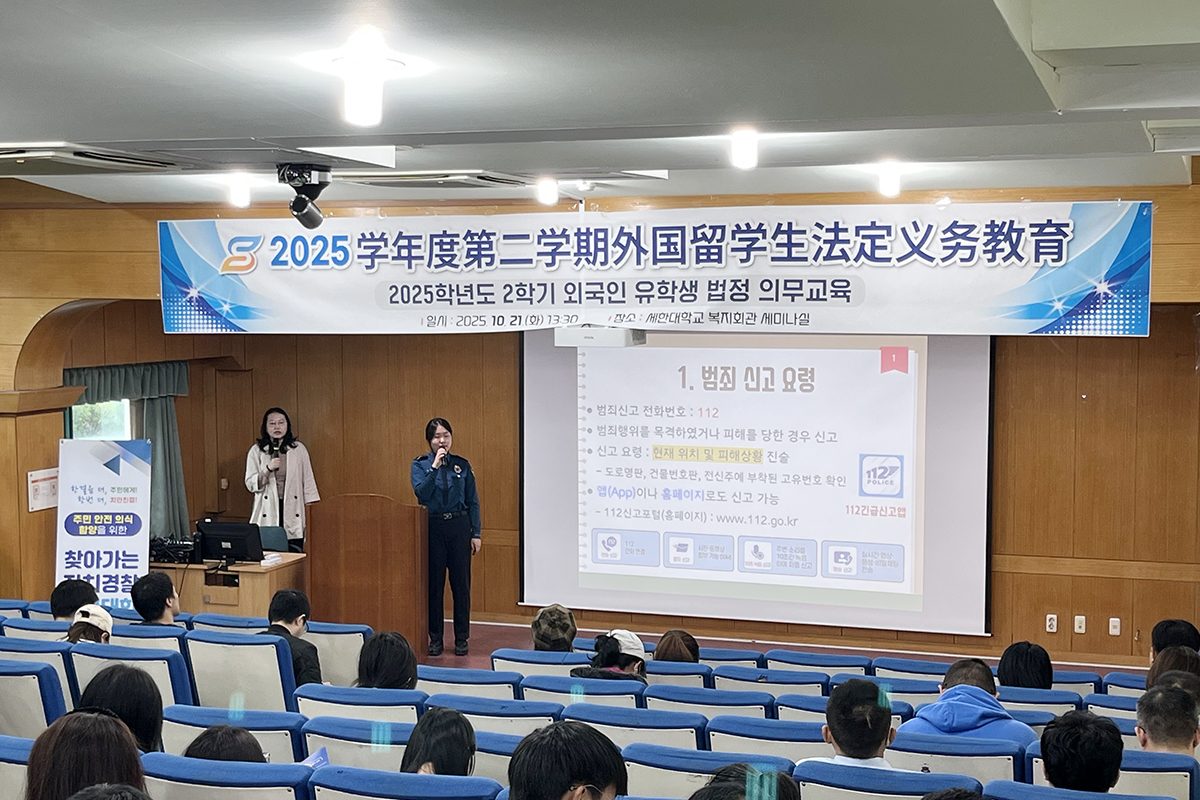 ¿µ¾Ï°æÂû¼(¼Àå ¾çÁ¤È¯)°¡ 21ÀÏ ¼¼ÇÑ´ëÇб³¿¡¼ Áß±¹ÀÎ À¯Çлý 150¿©¸íÀ» ´ë»óÀ¸·Î ¹üÁË¿¹¹æ±³½ÇÀ» ¿î¿µÇß´Ù.