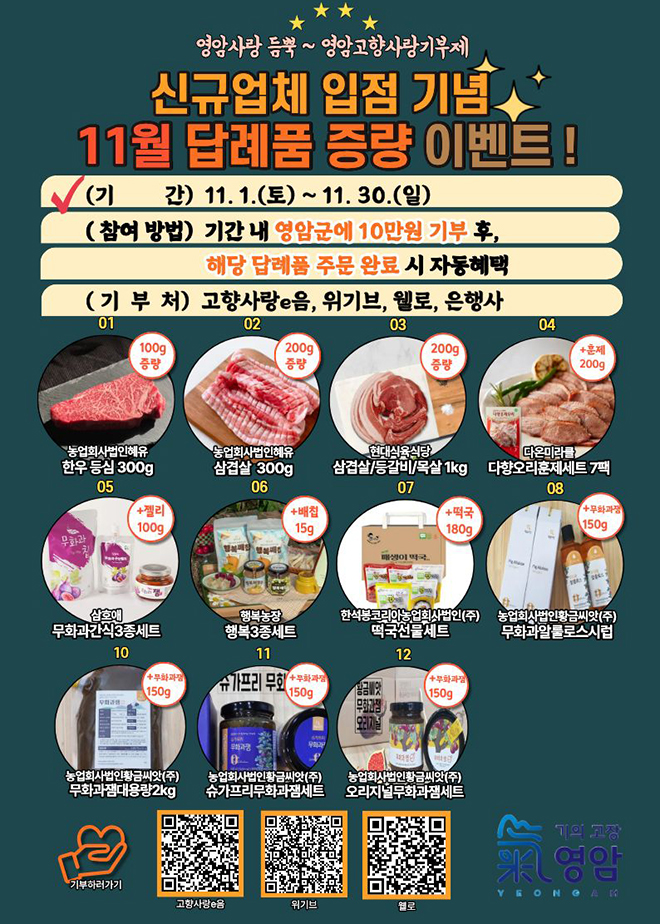 Áö³ 9¿ù ½Ç½ÃÇÑ ¡®¹«È°ú Ãß°¡ÁõÁ¤ À̺¥Æ®¡¯´Â 3ÀÏ ¸¸¿¡ 1¾ï ¿øÀÇ ±âºÎ±ÝÀ» ¸ð¾Ò´Ù. ±ºÀº ¹«È°ú¸¦ ´ä·ÊǰÀ¸·Î Á¦½ÃÇϸç Áö¿ª ³ó»ê¹° ¼Òºñ È®´ë¿¡µµ ±â¿©Çß´Ù°í ¹àÇû´Ù.