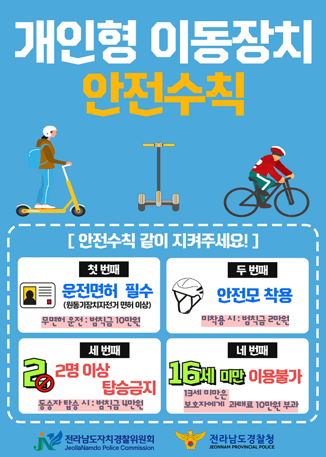 Àü¶ó³²µµÀÚÄ¡°æÂûÀ§¿øÈ¸°¡ °³ÀÎÇü À̵¿ÀåÄ¡(PM) ´ë¿©¾÷üÀÇ ¸éÇã È®ÀÎ Àǹ« À§¹Ý¿¡ ´ëÇØ Çü¹ý»ó ¡®¹«¸éÇã ¹æÁ¶ÇàÀ§¡¯¸¦ Àû¿ë, 11¿ù 1ÀϺÎÅÍ ´Ü¼Ó¿¡ ³ª¼¹´Ù.