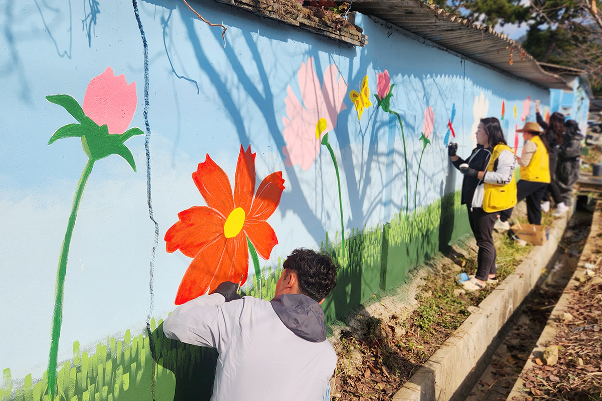 ºÀ»çÀÚµéÀº ¸¶À» ³ëÈÄ ´ãº¶ôÀ» ´ë»óÀ¸·Î ¡®Èñ¸Á°ú ÈÇÕÀÌ ÇǾ´Â ¸¶À»¡¯À» ÁÖÁ¦·Î º®È¸¦ ±×·È´Ù. »çÀü¿¡ ¹Ø±×¸² ÀÛ¾÷°ú ¹ÙÅÁÄ¥À» ¸¶Ä£ µÚ ´çÀÏ »öÄ¥°ú ÄÚÆÃ ÀÛ¾÷À» ÁøÇàÇß´Ù.
