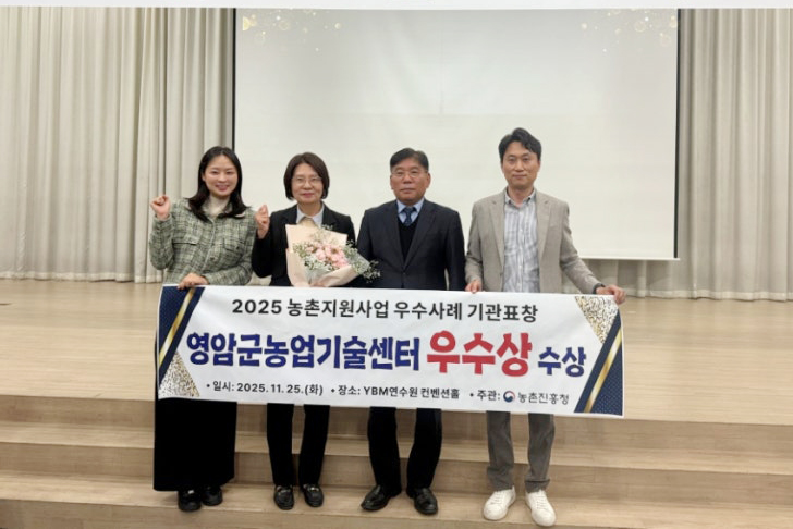 ¿µ¾Ï±º³ó¾÷±â¼ú¼¾ÅͰ¡ ³óÃÌÁøÈïû ÁÖ°ü ¡®2025 ³óÃÌÀÚ¿ø»ç¾÷ ¿ì¼ö»ç·Ê ±â°ü °æÁø¡¯¿¡¼ ³óÃÌÀÚ¿ø ºÐ¾ß ¿ì¼ö»óÀ» ¹Þ¾Ò´Ù.