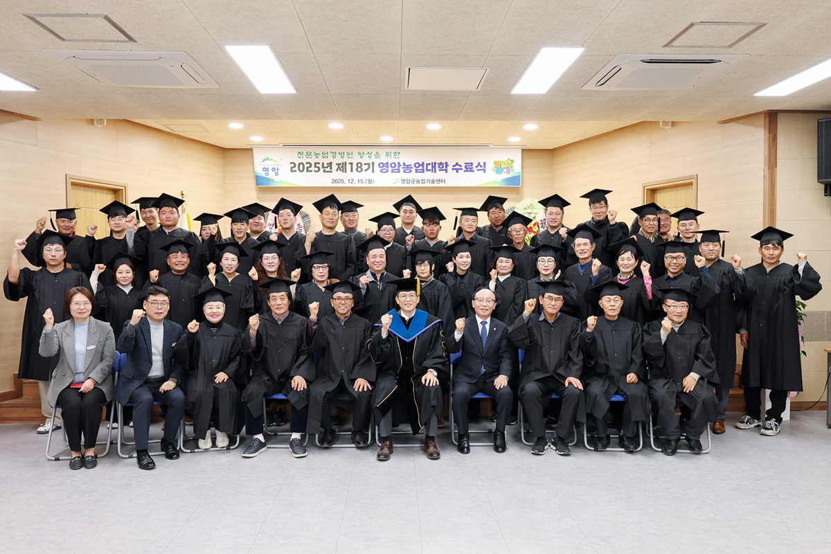 ¿µ¾Ï±ºÀÌ Áö³ 15ÀÏ ¿µ¾Ï±º³ó¾÷±â¼ú¼¾ÅÍ¿¡¼ ¡®2025³â ¿µ¾Ï³ó¾÷´ëÇÐ ¼ö·á½Ä¡¯À» ¿°í Á¦18±â ¹«È°ú¡¤ÇÑ¿ì °úÁ¤ ¼ö·á»ý 49¸íÀ» ¹èÃâÇß´Ù.