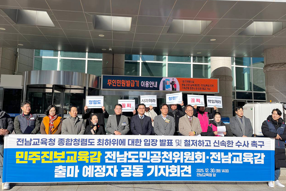 ¹ÎÁÖÁøº¸±³À°°¨ Àü³²µµ¹Î°øÃµÀ§¿øÈ¸ ¼Ò¼Ó Àü³²±³À°°¨ Ã⸶¿¹Á¤ÀÚ 3ÀÎÀÌ Àü³²±³À°Ã» û·Åµµ Æò°¡ °á°ú¿Í °ü·ÃÇØ ¼ö»ç±â°üÀÇ Ã¶ÀúÇÑ ¼ö»ç¸¦ Ã˱¸Çß´Ù.
