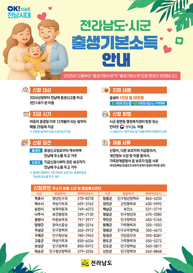 Àü¶ó³²µµ°¡ 2025³â¿¡ ÅÂ¾î³ Ãâ»ý¾Æ¸¦ ´ë»óÀ¸·Î Ãâ»ý±âº»¼Òµæ ½ÅûÀ» ¹Þ´Â´Ù.