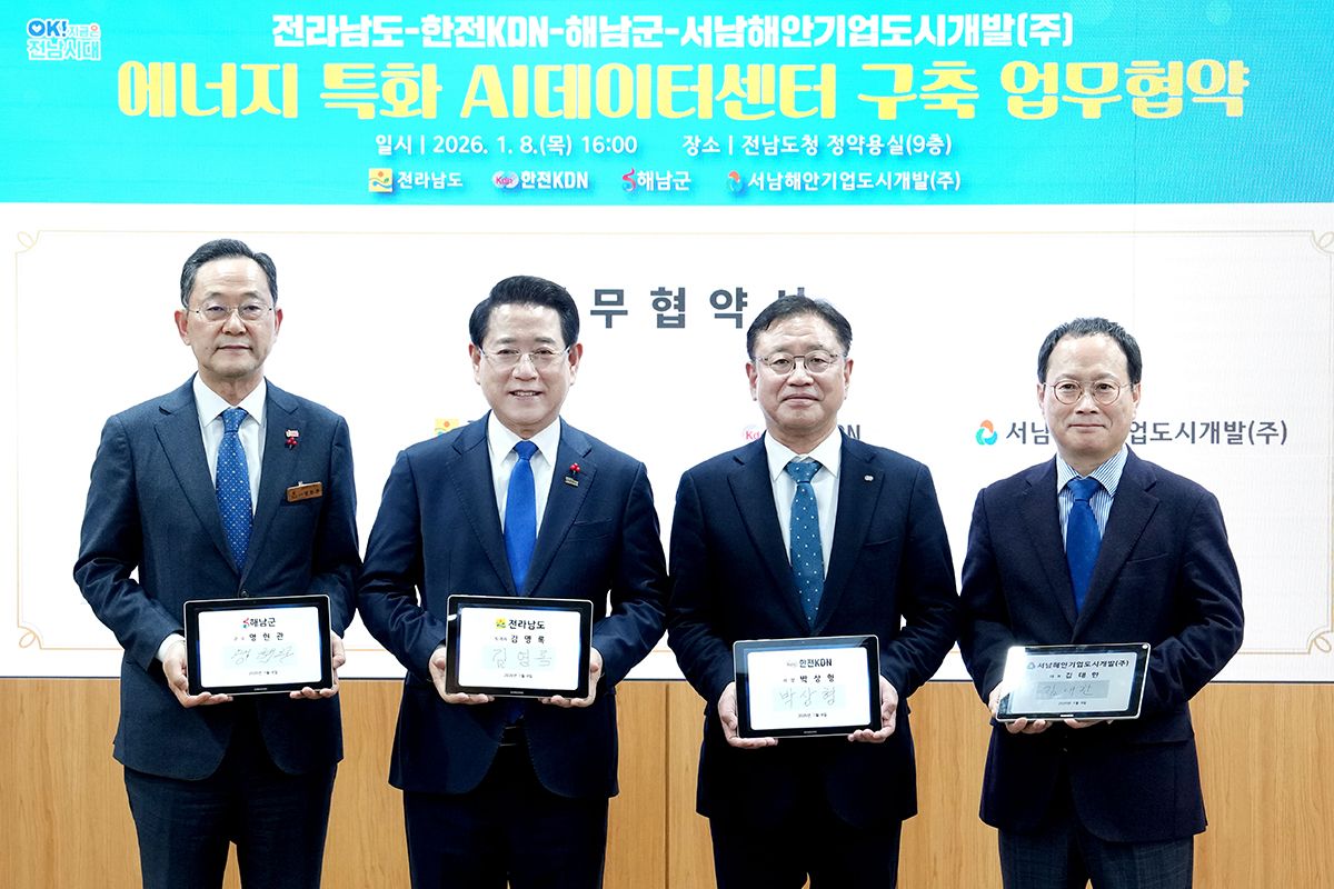>Àü¶ó³²µµ°¡ ÇÑÀüKDN, ÇØ³²±º, ¼³²Çؾȱâ¾÷µµ½Ã°³¹ß¢ß°ú ÇØ³² ¼Ö¶ó½Ãµµ¿¡ ¿¡³ÊÁö Æ¯È AI µ¥ÀÌÅͼ¾Å͸¦ ±¸ÃàÇÏ´Â ³»¿ëÀÇ ¾÷¹«Çù¾àÀ» ü°áÇß´Ù.
