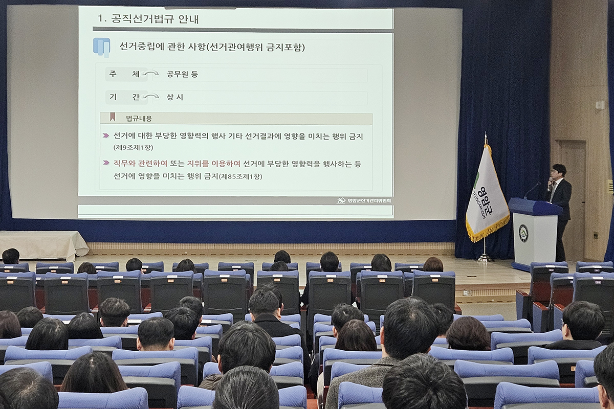 À̳¯ ±³À°¿¡¼´Â ¹è±â¹ü ¿µ¾Ï±º¼±°Å°ü¸®À§¿øÈ¸ »ç¹«°úÀåÀÌ °»ç·Î ³ª¼¹´Ù. ¹è »ç¹«°úÀåÀº °ø¹«¿øÀÇ ¼±°ÅÁ߸³Àǹ« °ü°è ¹ý·É°ú ÁÖ¿ä Á¦ÇÑ¡¤±ÝÁö ÇàÀ§ »ç·Ê¸¦ Áß½ÉÀ¸·Î °ÀÇÇß´Ù.