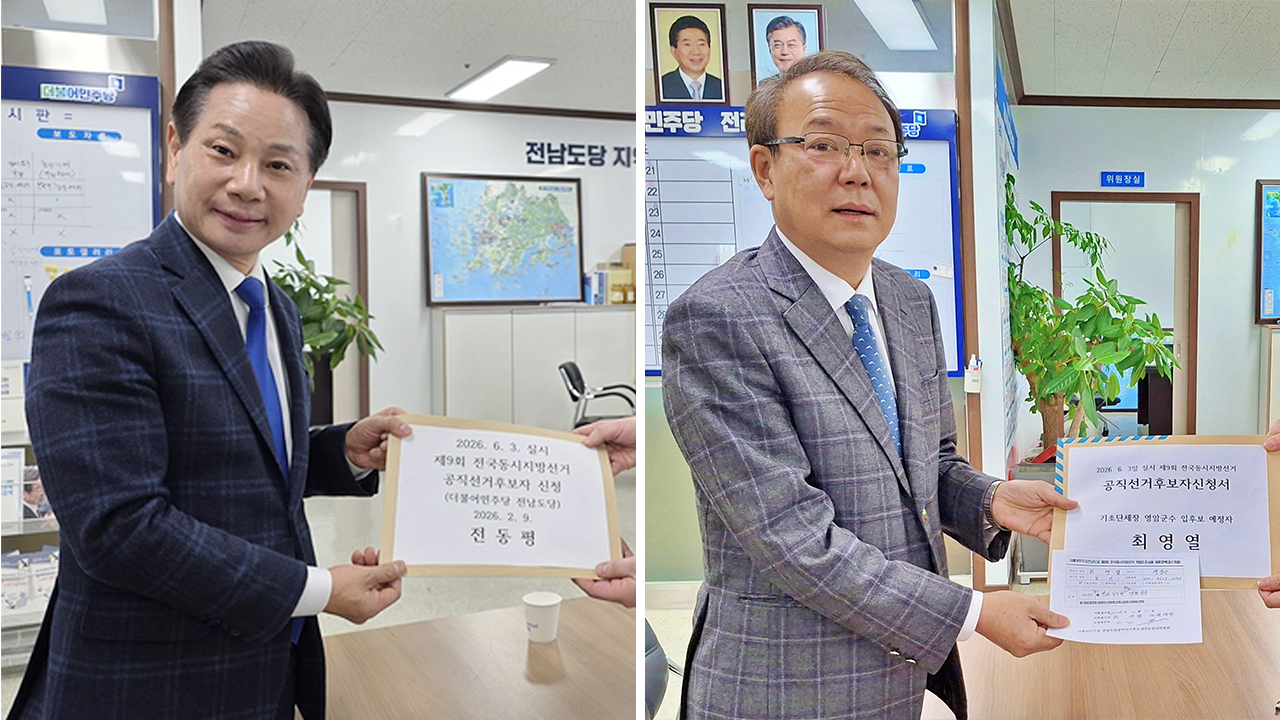 ´õºÒ¾î¹ÎÁÖ´ç 6¡¤3 Áö¹æ¼±°Å ¿µ¾Ï±º¼ö Èĺ¸ °æ¼±¿¡ Ã⸶ÇÏ´Â Àüµ¿Æò Àü ¿µ¾Ï±º¼ö¿Í ÃÖ¿µ¿ Àü Àü³²µµ Á¾Çչοø½ÇÀåÀÌ ´ç Èĺ¸ÀÚ µî·ÏÀ» ¸¶Ä¡°í °æ¼±¿¡ º»°Ý ³ª¼¹´Ù. µÎ È帴 Áö³ 10ÀÏ Àü³²µµ´ç¿¡ °øÁ÷¼±°ÅÈĺ¸ÀÚ½Åû¼¸¦ °¢°¢ Á¦ÃâÇß´Ù.