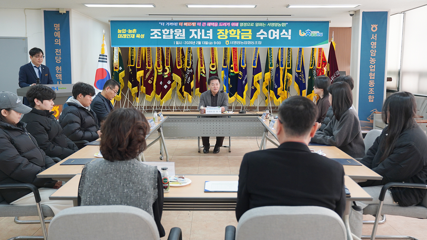 ¼¿µ¾Ï³óÇù(Á¶ÇÕÀå ±è¿ø½Ä)ÀÌ Áö³ 13ÀÏ Á¶ÇÕ¿ø ÀÚ³à ÀåÇлý 9¸í¿¡°Ô ÀåÇбÝÀ» Àü´ÞÇß´Ù.