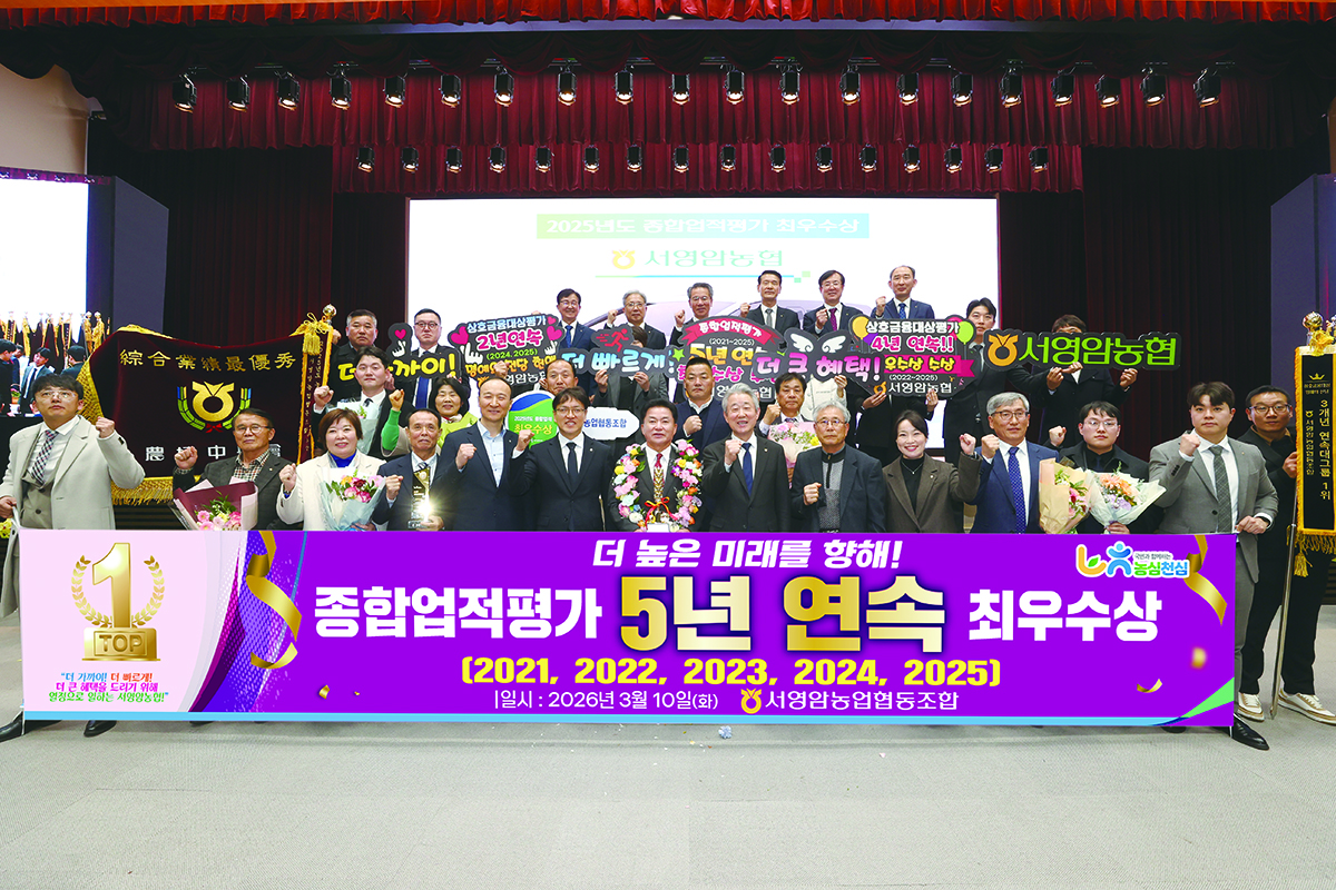 ¼¿µ¾Ï³óÇùÀº Áö³ 10ÀÏ ³óÇùÁß¾Óȸ º»°ü¿¡¼ ¿¸° ½Ã»ó½Ä¿¡¼ Á¾ÇÕ¾÷ÀûÆò°¡ 5³â ¿¬¼Ó(2021~2025³â) ÃÖ¿ì¼ö»óÀ» ºñ·ÔÇØ »óÈ£±ÝÀ¶´ë»ó 4³â ¿¬¼Ó ÃÖ¿ì¼ö»ó, »óÈ£±ÝÀ¶´ë»ó ¸í¿¹ÀÇ Àü´ç 2³â ¿¬¼Ó Çå¾× µî 3°³ ºÎ¹®¿¡¼ ¼ö»óÇß´Ù.