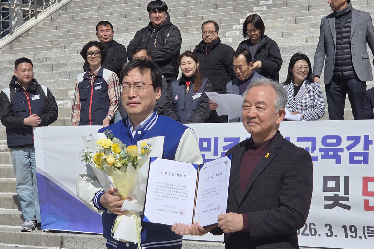 ¹ÎÁÖÁøº¸±³À°°¨ Àü³²µµ¹Î°øÃµÀ§¿øÈ¸(ÁýÇàÀ§¿øÀå ¼±Áø·¡)°¡ Àå°üÈ£ ¿¹ºñÈ常¦ Àü³²±¤ÁÖÅëÇÕÆ¯º°½Ã ±³À°°¨ ¼±°ÅÀÇ ¹ÎÁÖÁøº¸ Áø¿µ ´ÜÀÏÈĺ¸·Î È®Á¤Çß´Ù.