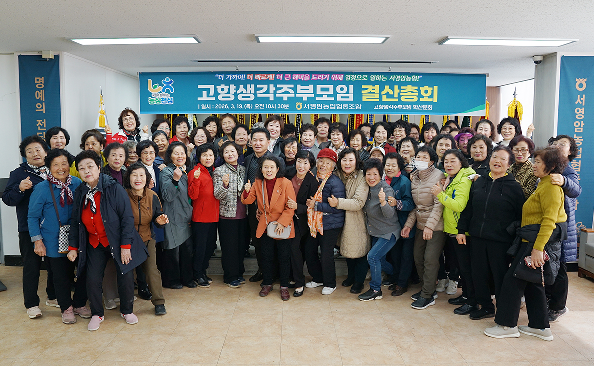 ¼¿µ¾Ï³óÇù(Á¶ÇÕÀå ±è¿ø½Ä) »êÇÏ °íÇâ»ý°¢ÁֺθðÀÓÀÌ Á¤±âÃÑȸ¸¦ ¿°í 2026³âµµ »ç¾÷°èȹ°ú ¿¹»ê¾ÈÀ» ½ÉÀÇÇß´Ù.