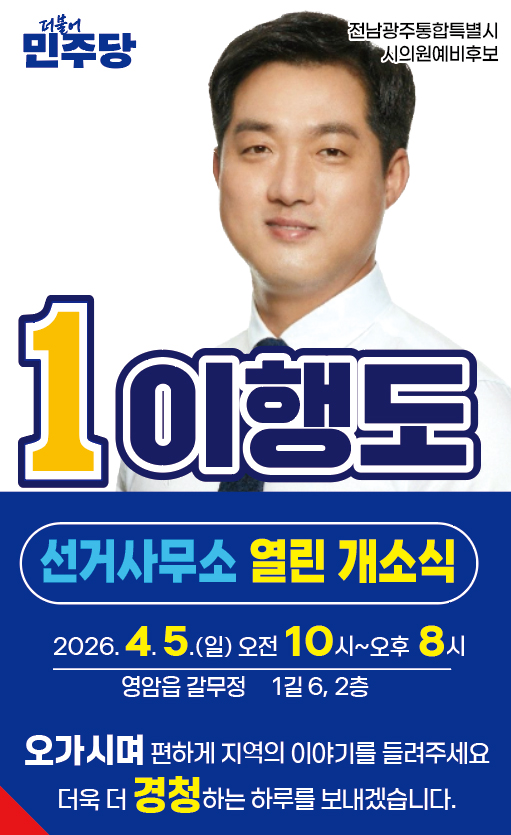 ´õºÒ¾î¹ÎÁÖ´ç ÀÌÇ൵ Àü³²±¤ÁÖÆ¯º°½Ã ½ÃÀÇ¿ø ¿¹ºñÈĺ¸(¿µ¾Ï±º Á¦1¼±°Å±¸)°¡ ¿À´Â 5ÀÏ ¿µ¾ÏÀ¾¿¡¼ ¼±°Å»ç¹«¼Ò °³¼Ò½ÄÀ» ¿¬´Ù.