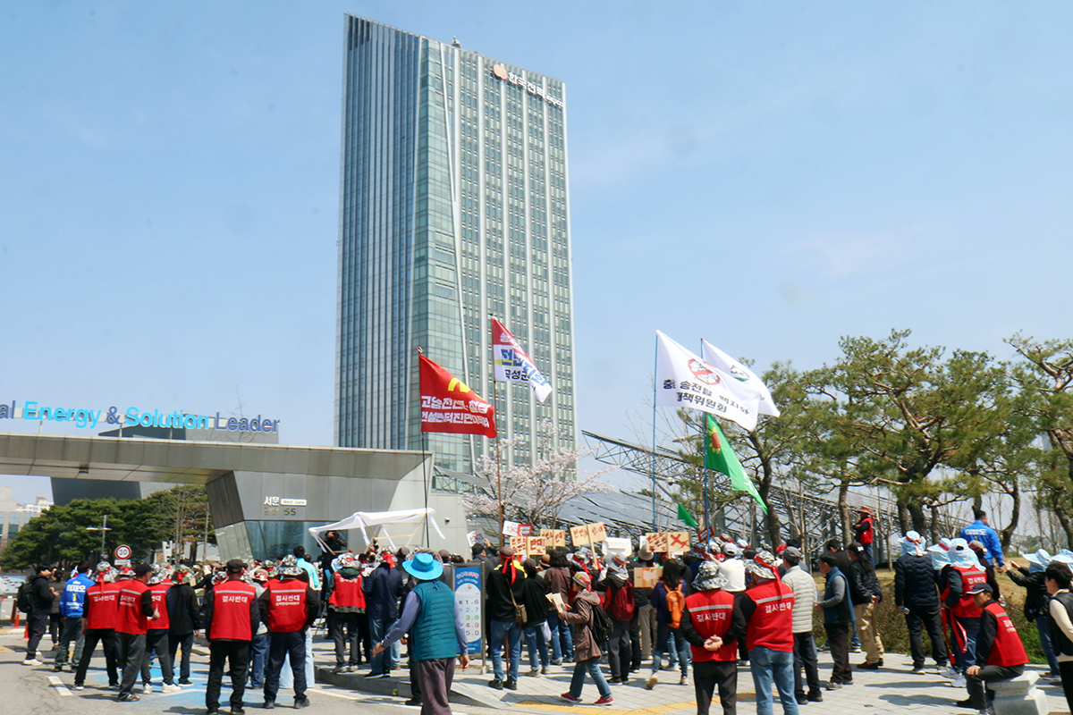 ¼ÛÀü¼±·Î °Ç¼³¿¡ ¹Ý´ëÇÏ´Â Àü±¹ °¢ÁöÀÇ ÁֹΠ300¿© ¸íÀÌ 2ÀÏ ³ªÁÖ ÇÑÀü º»»ç ¾Õ¿¡¼ ±È±â´ëȸ¸¦ ¿°í ¼Û¡¤º¯Àü¼±¼³ºñ °èȹ Àü¸é Àç°ËÅä¿Í ÀÔÁö¼±Á¤ ÀýÂ÷ Áï°¢ Áß´ÜÀ» ¿ä±¸Çß´Ù. Áö³ 3¿ù 4ÀÏ ¼¿ï ±¤È¹® ±È±â´ëȸ ÀÌÈÄ ÇÑ ´Þ ¸¸¿¡, À̹ø¿¡´Â ´Ù½Ã ÇÑÀü º»»ç¸¦ Á÷Á¢ °Ü³ÉÇÑ °ÍÀÌ´Ù.