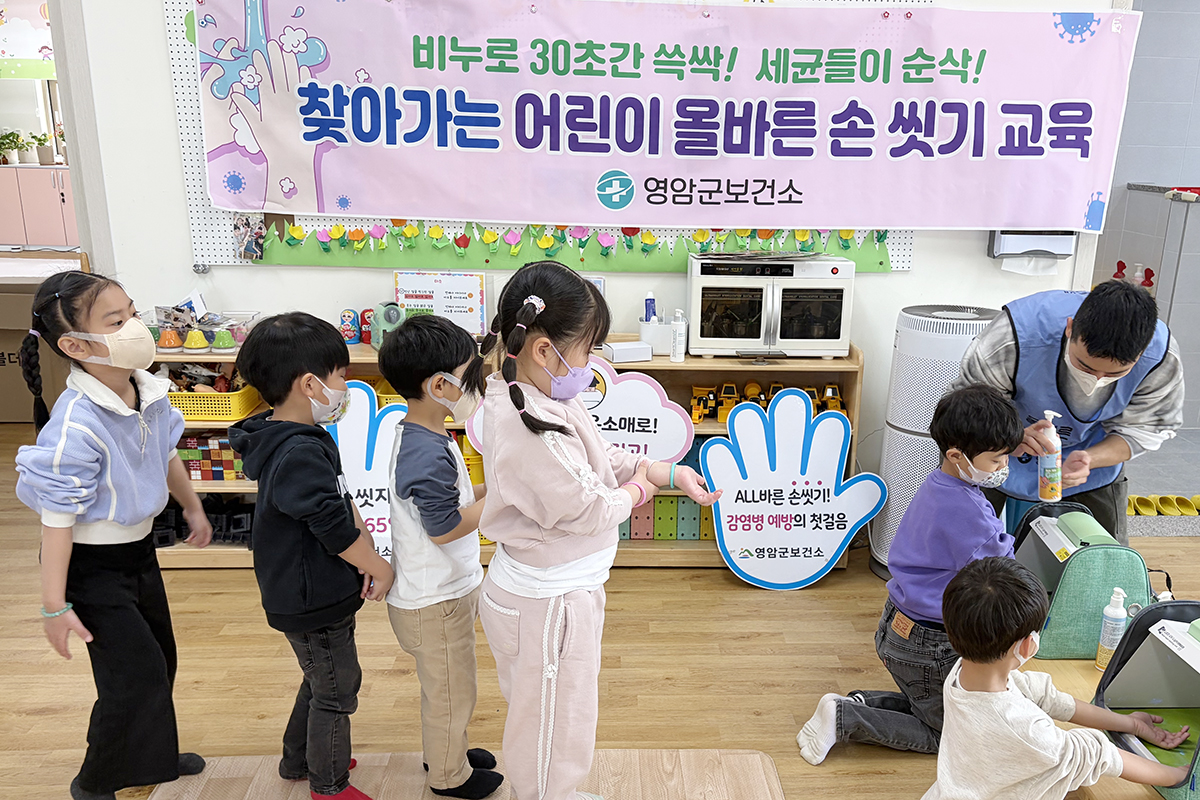 À̹ø ±³À°Àº ¡®±ú²ýÇÑ ¼Õ, °Ç°ÇÑ ¹Ì·¡¡¯¸¦ ÁÖÁ¦·Î, °¨¿°º´ ¿¹¹æ¼öÄ¢°ú ¿Ã¹Ù¸¥ ¼Õ ¾Ä±â ¹æ¹ýÀ» ¾î¸°À̵鿡°Ô ¾È³»Çϱâ À§ÇØ ¸¶·ÃµÆ´Ù.