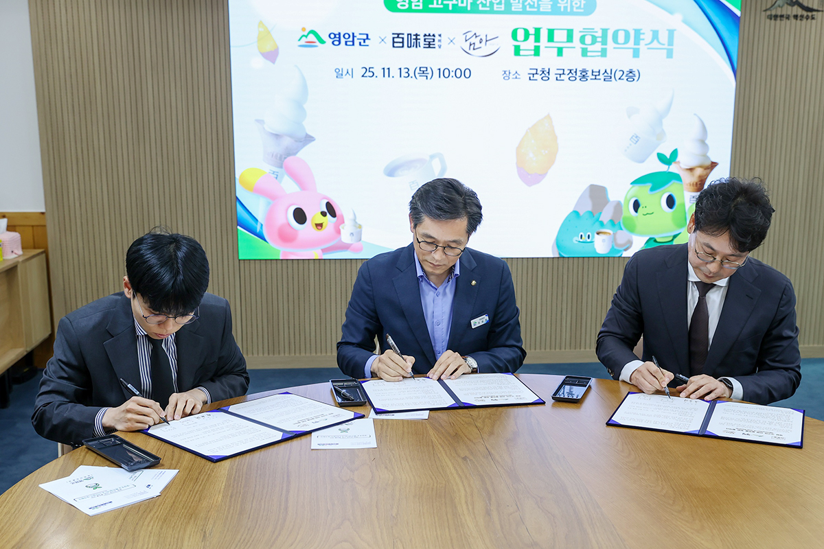 ¿µ¾Ï±ºÀº 13ÀÏ ±ºÃ»¿¡¼ ¢ß¹é¹Ì´ç, ¢ß´ã¾Æ¿Í ¡®¿µ¾Ï±º °í±¸¸¶ »ê¾÷ ¹ßÀüÀ» À§ÇÑ Çù¾à½Ä¡¯À» °³ÃÖÇß´Ù. ¿ì½ÂÈñ ¿µ¾Ï±º¼ö¿Í ¹ÎÁØ¿¬ ¢ß¹é¹Ì´ç º»ºÎÀå, ±è¿µÈÄ ¢ß´ã¾Æ ´ëÇ¥°¡ Âü¼®ÇØ Çù¾à¼¿¡ ¼¸íÇß´Ù.