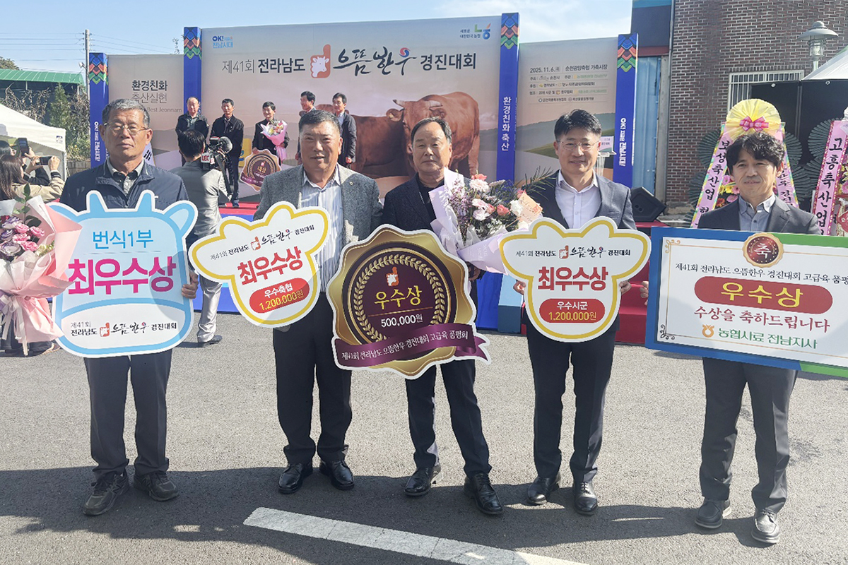 À̾î 6ÀÏ Àü³² À¸¶äÇÑ¿ì °æÁø´ëȸ¿¡¼´Â 5°³ ºÎ¹®¿¡¼ ÀÔ»óÇß´Ù. ¿µ¾ÏÀ¾ ¹®¿µ½Ä ³ó°¡´Â ¹ø½Ä1ºÎ ÃÖ¿ì¼ö»ó, ¹Ì¾Ï¸é ÇÔ¿µÂù ³ó°¡´Â ¹ø½Ä2ºÎ ¿ì¼ö»ó, ½ÅºÏ¸é ÀÌÀ缺 ³ó°¡´Â °í±ÞÀ°ºÎ Àå·Á»óÀ» ¹Þ¾Ò´Ù.