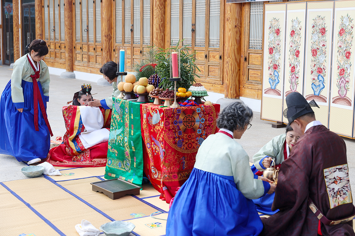 ÀüÅëÈ¥·Ê´Â dz¹°ÆÐÀÇ ±æÅÍÁֱ⠰ø¿¬À¸·Î ½ÃÀ۵ƴÙ. ½Å¶ûÀº ¹é¸¶¸¦, ½ÅºÎ´Â ²É°¡¸¶¸¦ Ÿ°í È¥·Êû¿¡ ÀÔÀåÇß´Ù. ±è¼÷Èñ ¸íâÀÇ »ç¶û°¡ °ø¿¬°ú ÇÔ²² È¥·Ê°¡ À̾îÁ³À¸¸ç, Æó¹é¿¡¼´Â Çϰ´µéÀÌ ºÎºÎ¿¡°Ô ¹ã°ú ´ëÃ߸¦ ´øÁö¸ç ¹é³âÇØ·Î¸¦ ±â¿øÇß´Ù.