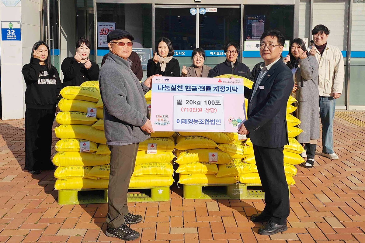 ÀÌ·¹¿µ³óÁ¶ÇÕ¹ýÀÎ(´ëÇ¥ ¾öÅÂö)Àº 2ÀÏ »ïÈ£À¾ÇàÁ¤º¹Áö¼¾ÅÍ¿¡ 20kgµéÀÌ ½Ò 100Æ÷¸¦ Àü´ÞÇß´Ù. 710¸¸ ¿ø »ó´çÀÇ À̹ø ±âºÎ´Â °ü³» ¾î·Á¿î ÀÌ¿ô¿¡°Ô ¹èºÐµÉ ¿¹Á¤ÀÌ´Ù. ÀÌ·¹¿µ³óÁ¶ÇÕ¹ýÀÎÀº Áö³ 10³â µ¿¾È ¸Å³â °°Àº ±Ô¸ðÀÇ ½ÒÀ» ±âºÎÇØ ¿Ô´Ù.
