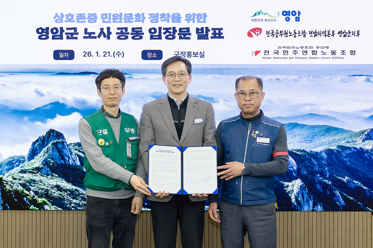 ¿µ¾Ï±º°ú °ø¹«¿ø¡¤¹ÎÁÖ¿¬ÇÕ ³ëµ¿Á¶ÇÕÀÌ ¾Ç¼º¹Î¿øÀ¸·ÎºÎÅÍ °øÁ÷ÀÚ¸¦ º¸È£Çϱâ À§ÇÑ °øµ¿ ÀÔÀå¹®À» ¹ßÇ¥Çß´Ù.